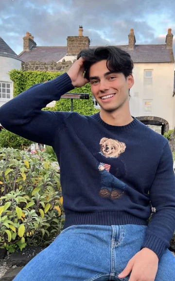 knitted, lightweight knit, solid colour, brand logo, round collar, long sleeves, no pockets, large sizedSize Chart: